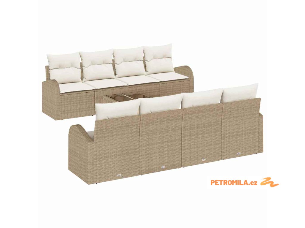 Sada zahradních pohovek s polštářem 9 pcs Béžová a krémová