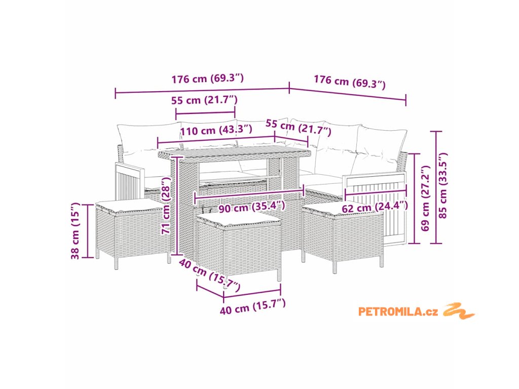 - Odolná Konstrukce: Sada gauče má silný rám z práškově lakované oceli, který zajišťuje stabilitu a dlouhověkost a přitom dobře vypadá. Kvalitní poly ratan dává hezkou a UV-odolnou texturu, která snese venkovní podmínky bez blednutí.