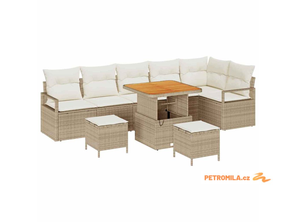 Sada zahradních pohovek s polštářem 9 pcs Béžová a krémová