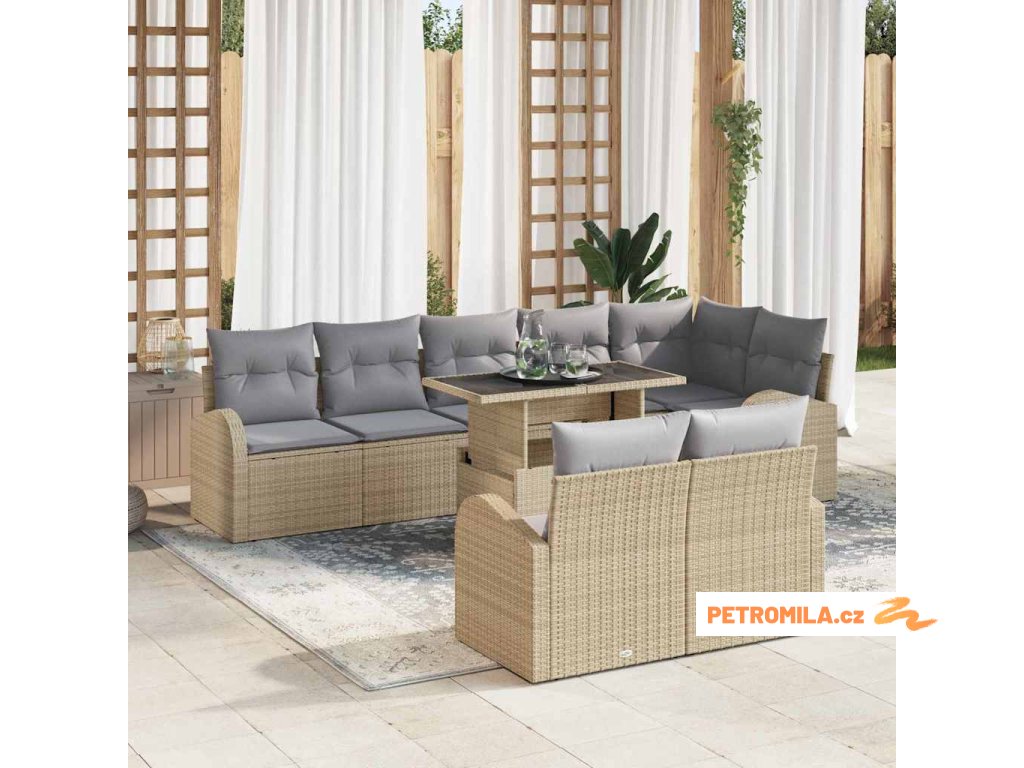 Sada zahradních pohovek s polštářem 9 pcs béžová a světle šedá