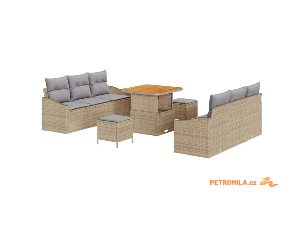 Sada zahradních pohovek s polštářem 9 pcs Béžová a Světle šedá