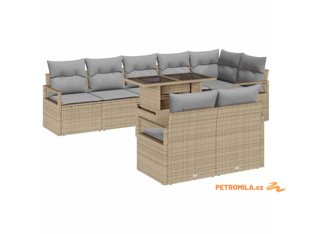 Sada zahradních pohovek s polštářem 9 pcs béžová a světle šedá