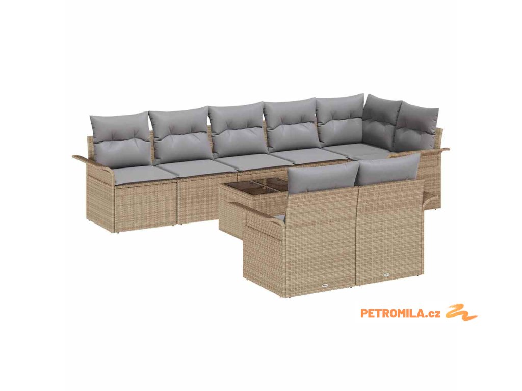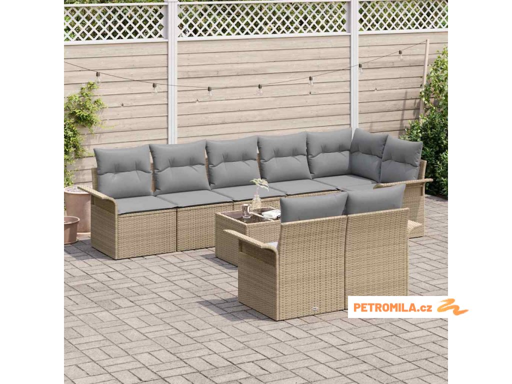 Sada zahradních pohovek s polštářem 9 pcs Béžová Poly ratan