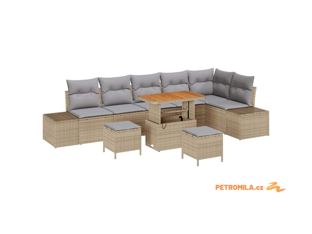Sada zahradních pohovek s polštářem 8 pcs Béžová Poly ratan