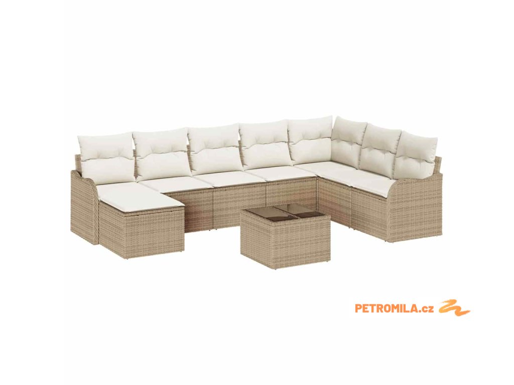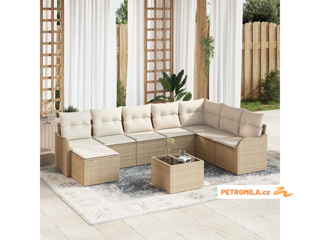 Sada zahradních pohovek s polštářem 9 pcs Béžová Poly ratan