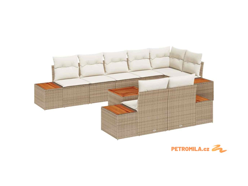 Sada zahradních pohovek s polštářem 9 pcs Béžová polyratan
