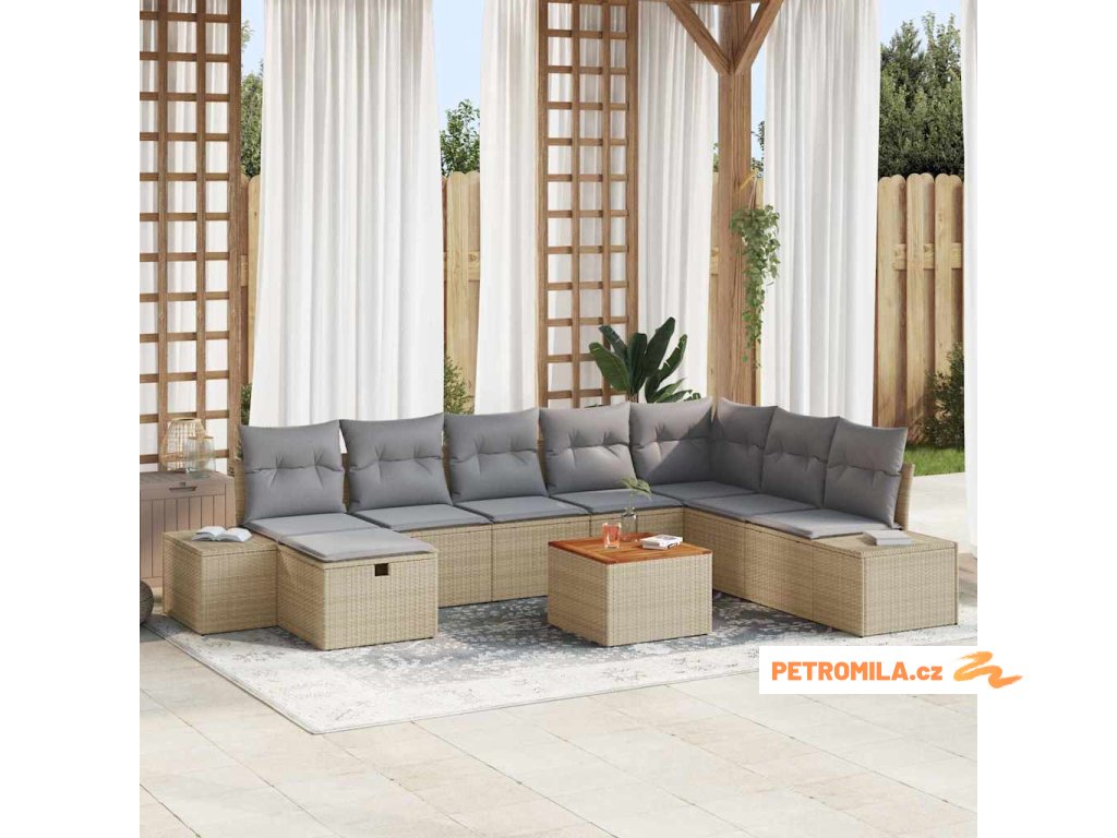 Sada zahradních pohovek s polštářem 9 pcs Béžová polyratan