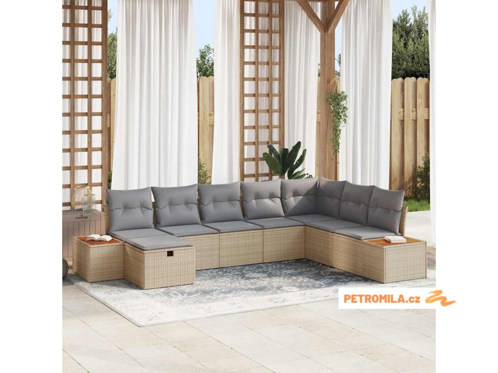 Sada zahradních pohovek s polštářem 9 pcs Béžová polyratan