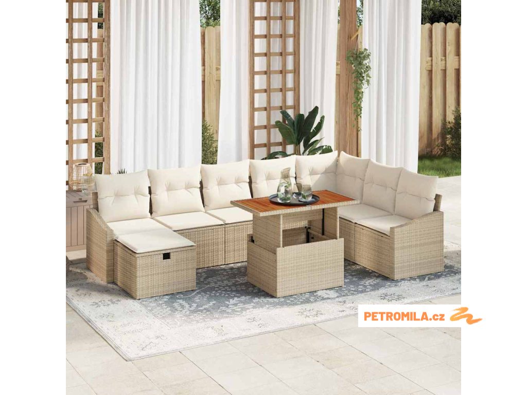 Sada zahradních pohovek s polštářem 9 pcs Béžová polyratan