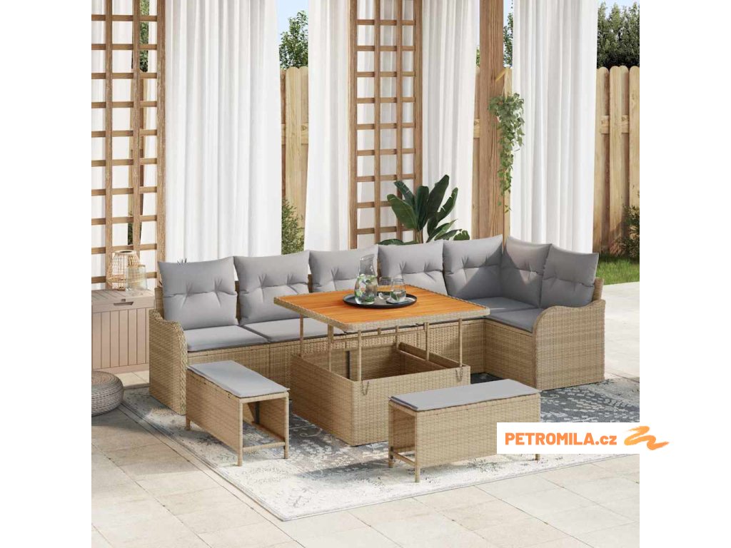 Sada zahradních pohovek s polštářem 9 pcs Béžová polyratan