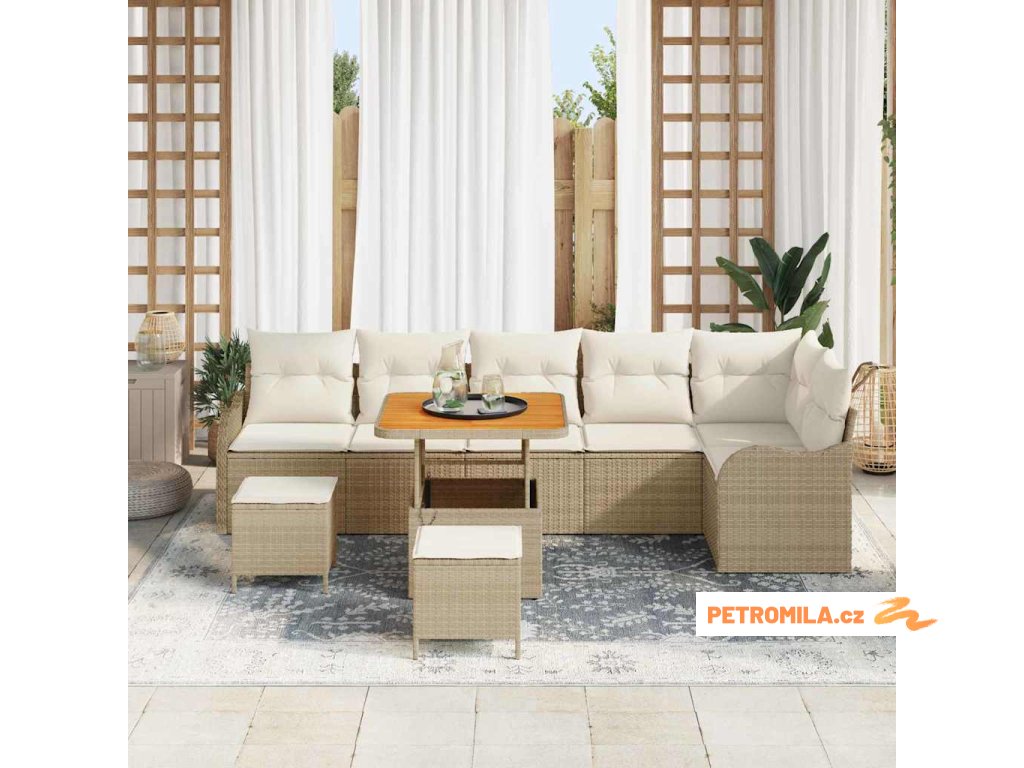 Sada zahradních pohovek s polštářem 9 pcs Béžová polyratan