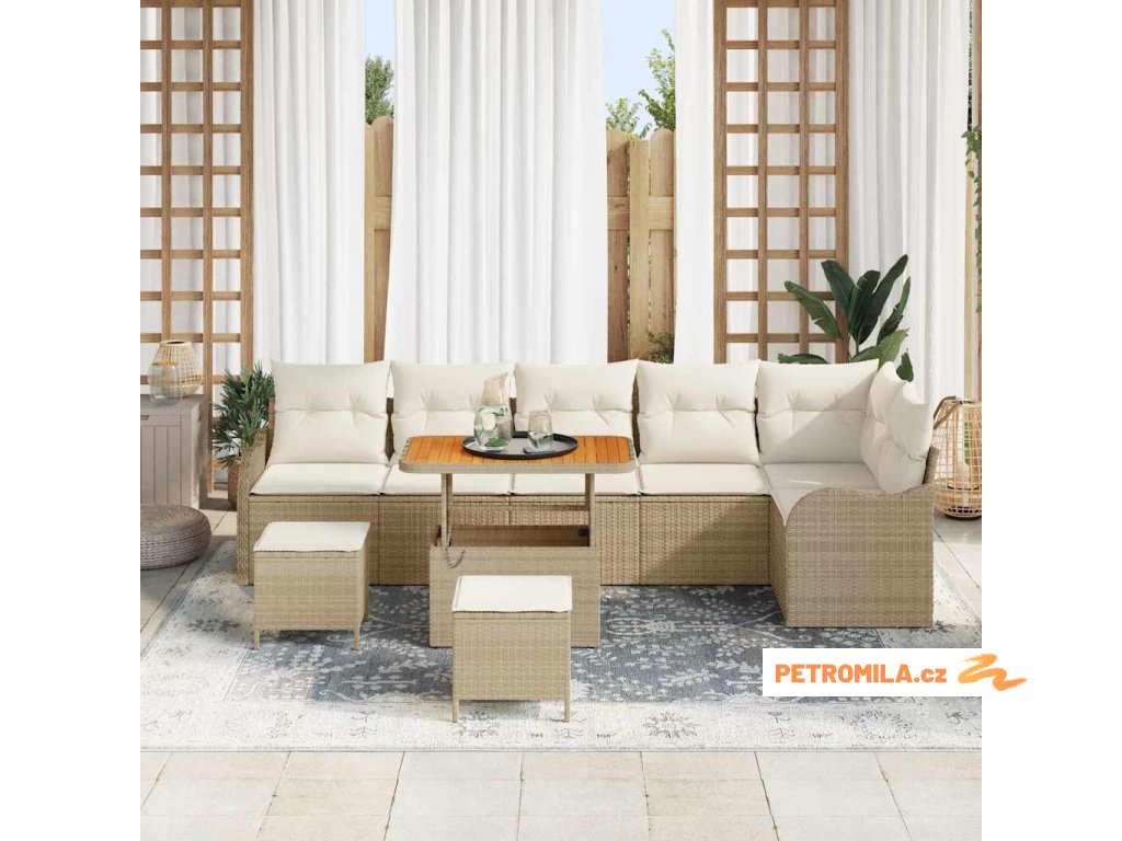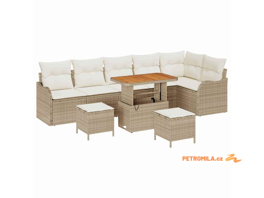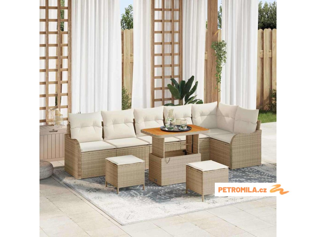 Sada zahradních pohovek s polštářem 9 pcs Béžová polyratan