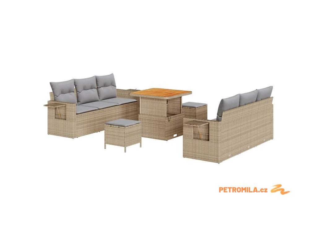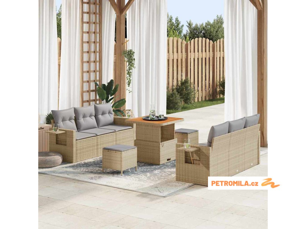 Sada zahradních pohovek s polštářem 9 pcs Béžová polyratan