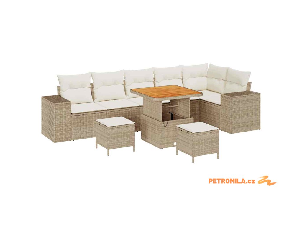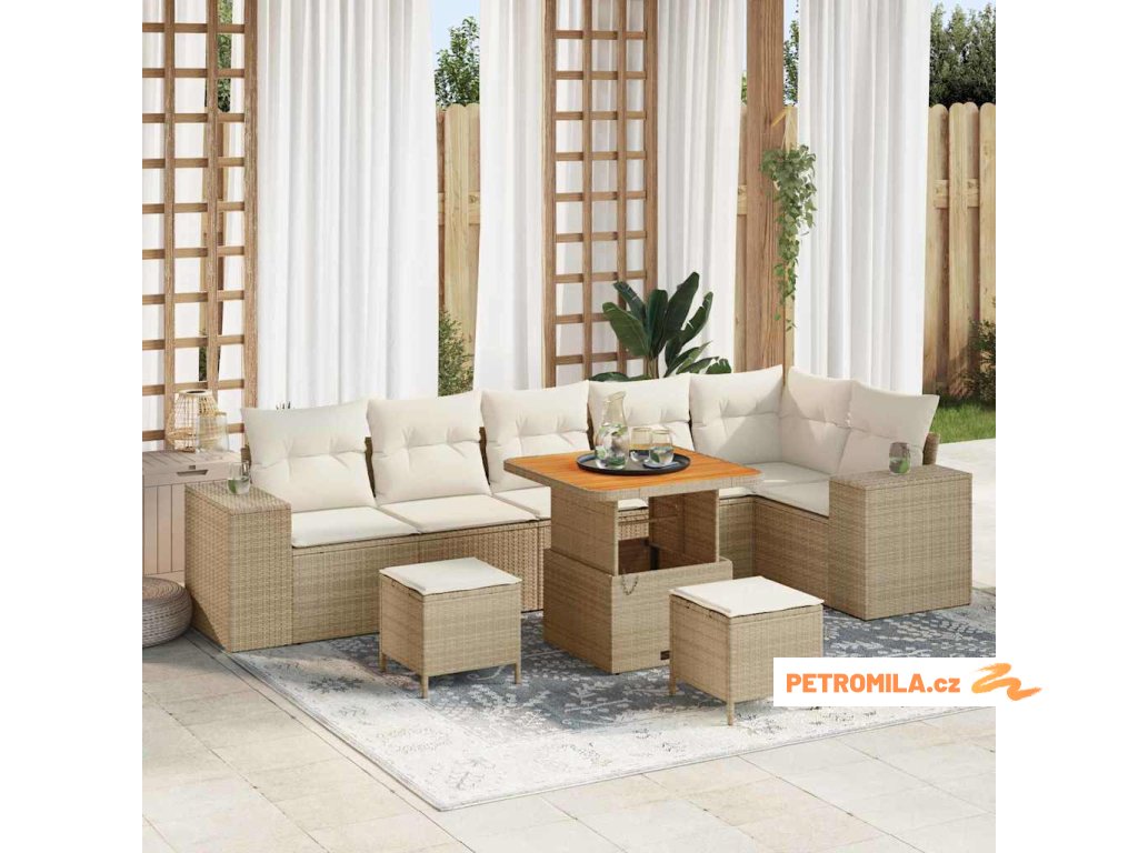 Sada zahradních pohovek s polštářem 9 pcs Béžová polyratan
