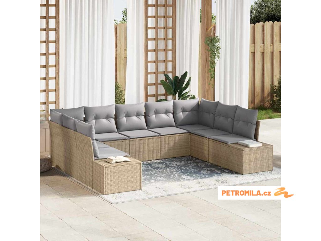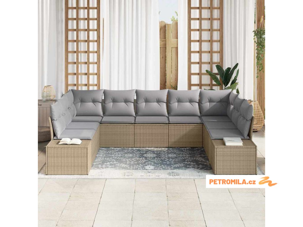 Sada zahradních pohovek s polštářem 9 pcs Béžová Poly ratan
