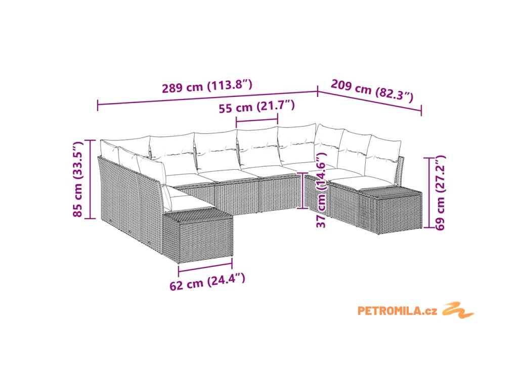 Sada zahradních pohovek s úložištěm 11 pcs Šedá Poly ratan