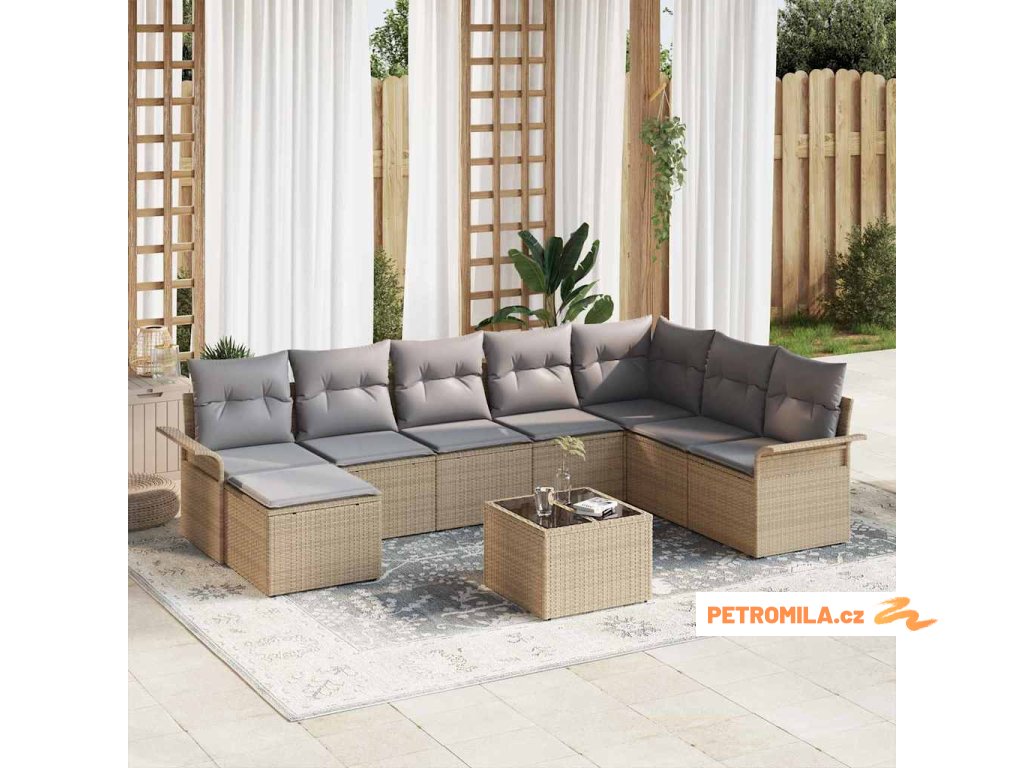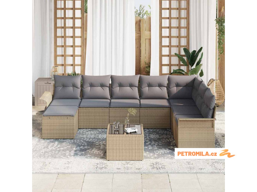 Sada zahradních pohovek s polštářem 9 pcs Béžová Poly ratan