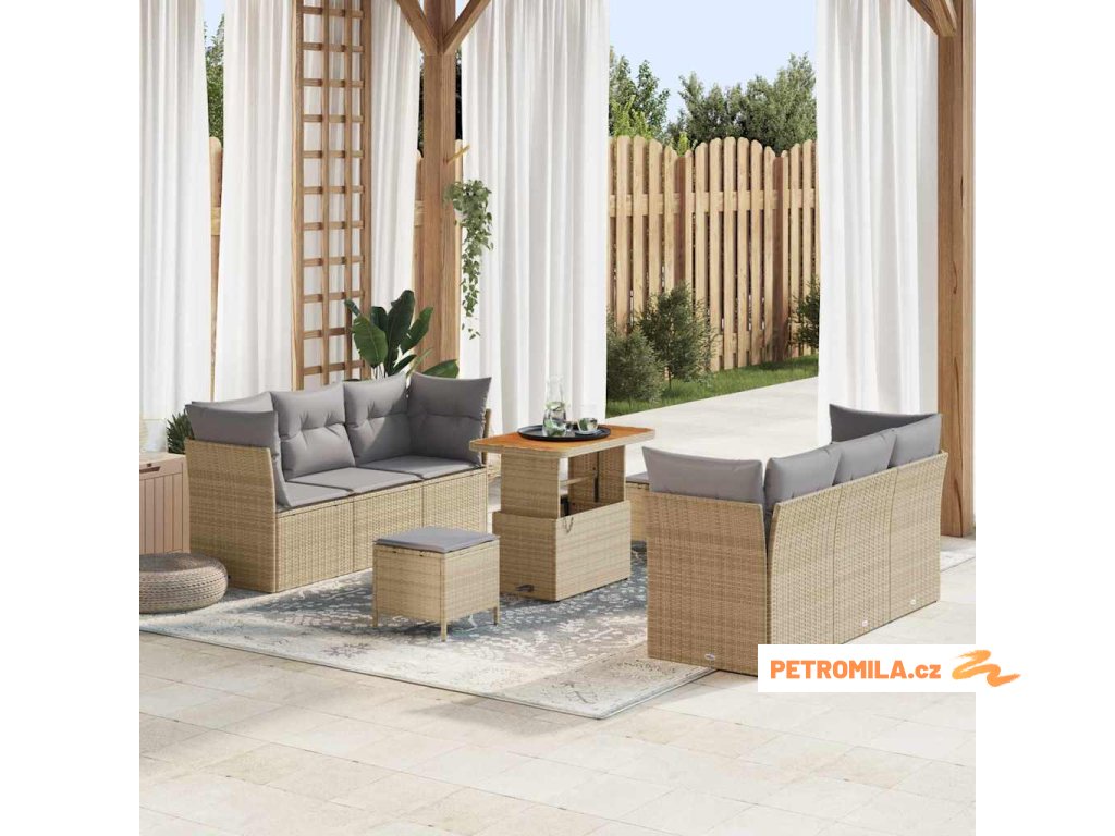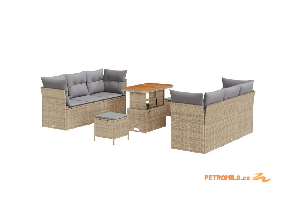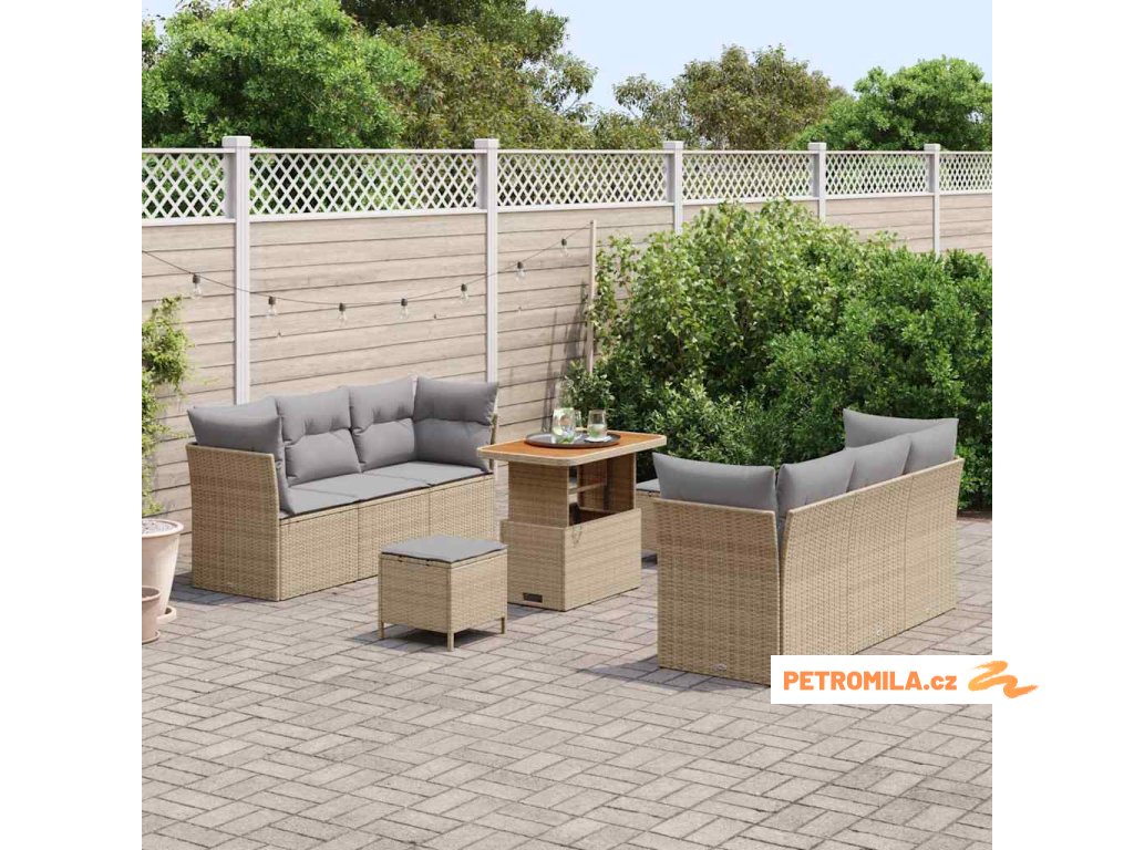 Sada zahradních pohovek s polštářem 9 pcs Béžová Poly ratan