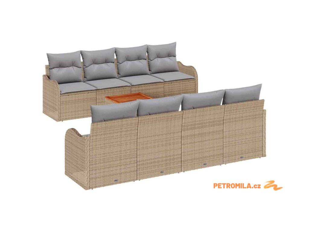 Sada zahradních pohovek s polštářem 9 pcs Béžová polyratan