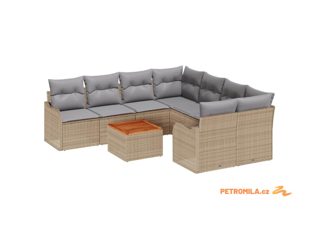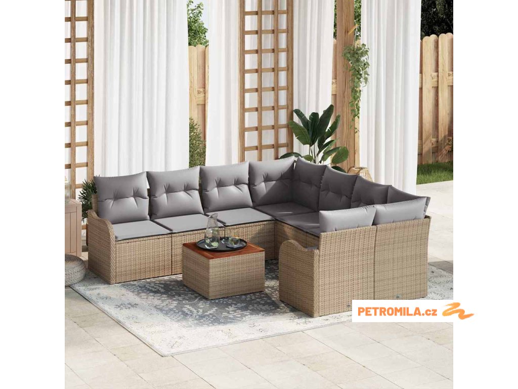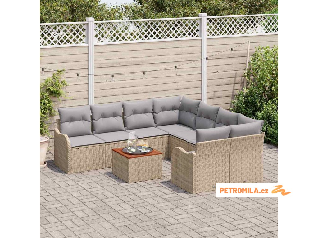 Sada zahradních pohovek s polštářem 9 pcs Béžová polyratan