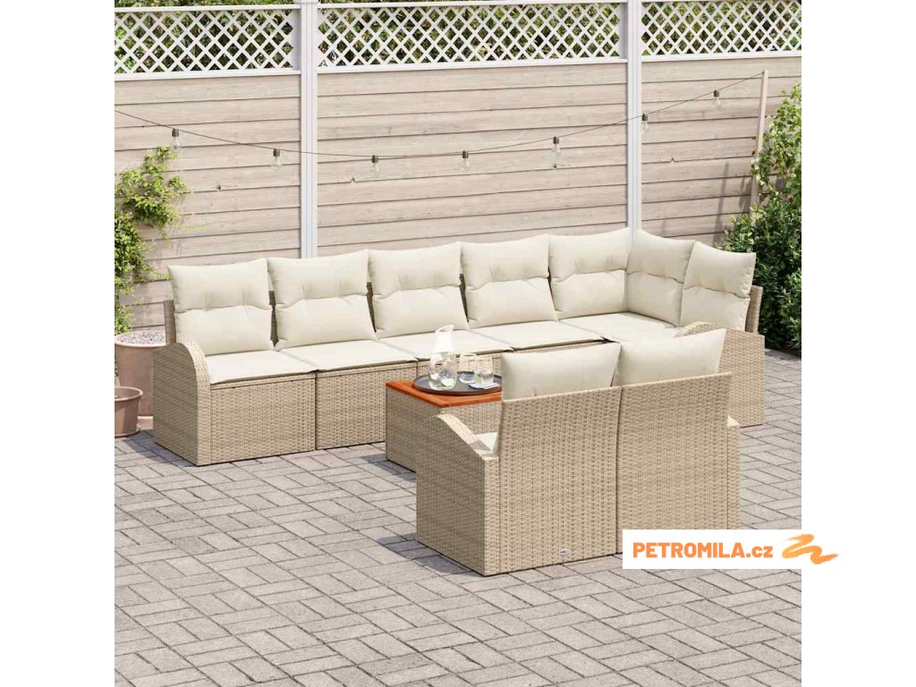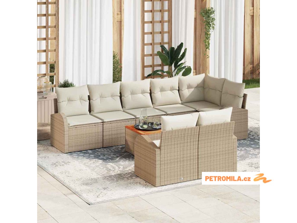 Sada zahradních pohovek s polštářem 9 pcs Béžová polyratan
