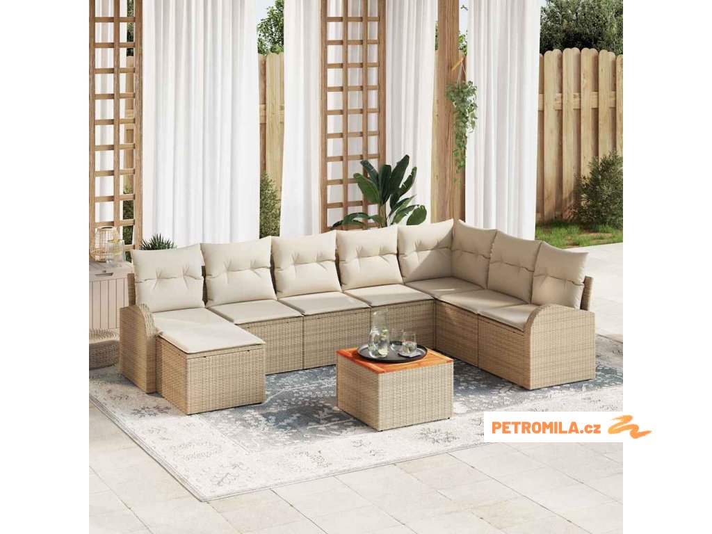 Sada zahradních pohovek s polštářem 9 pcs Béžová polyratan
