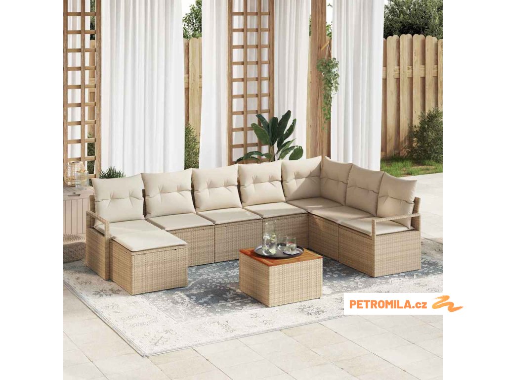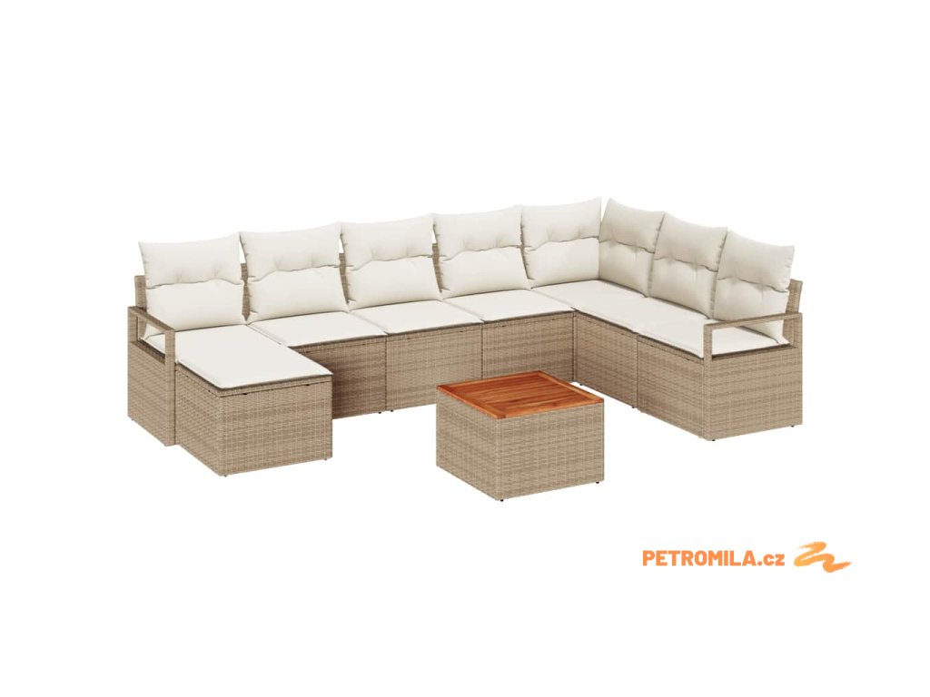 Sada zahradních pohovek s polštářem 9 pcs Béžová polyratan
