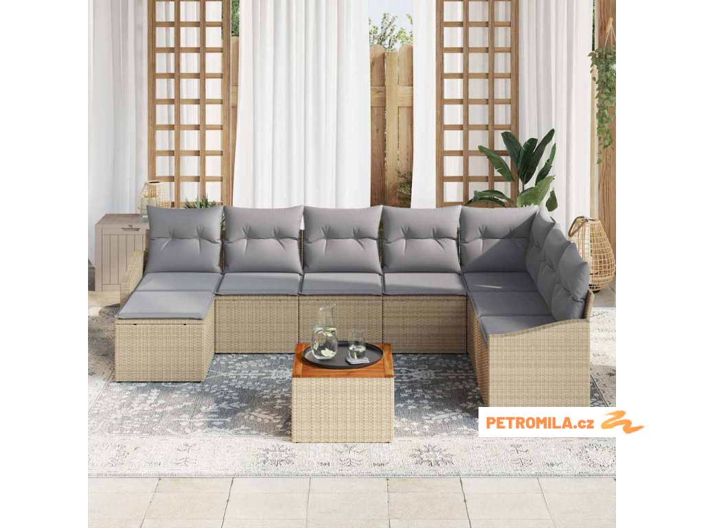 Sada zahradních pohovek s polštářem 9 pcs Béžová polyratan