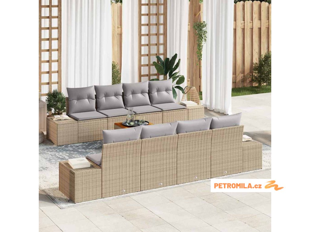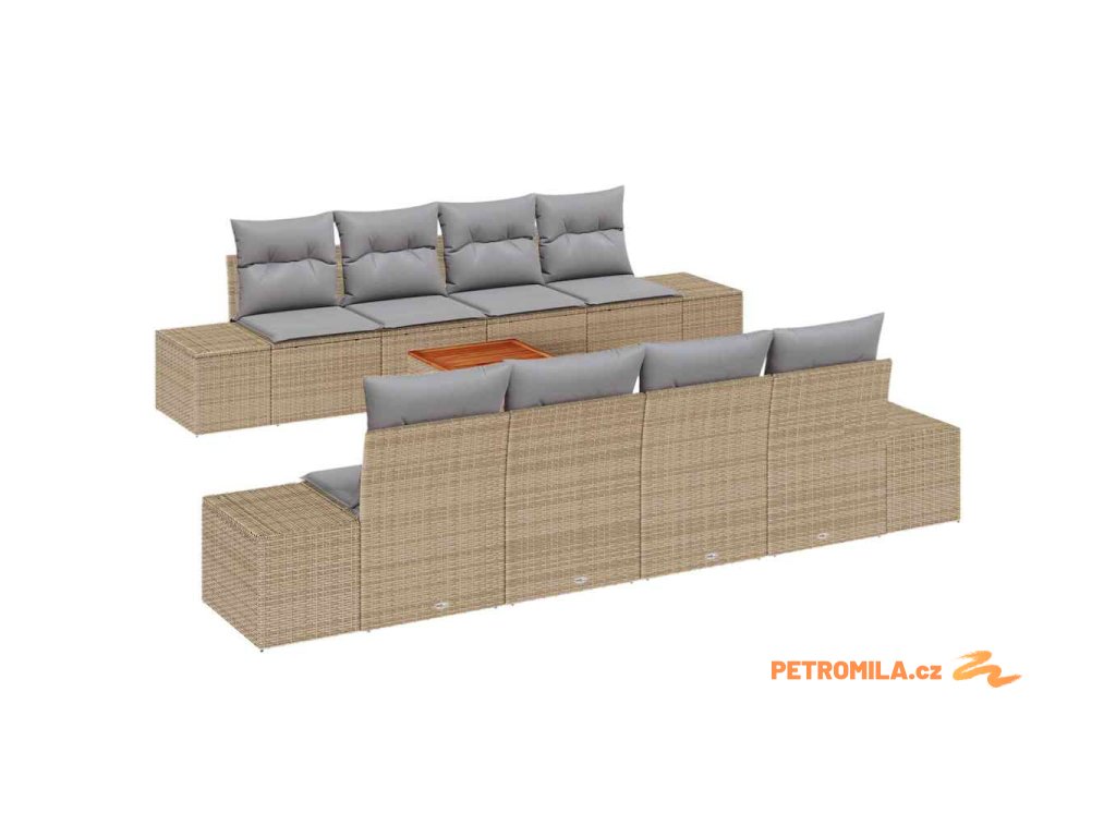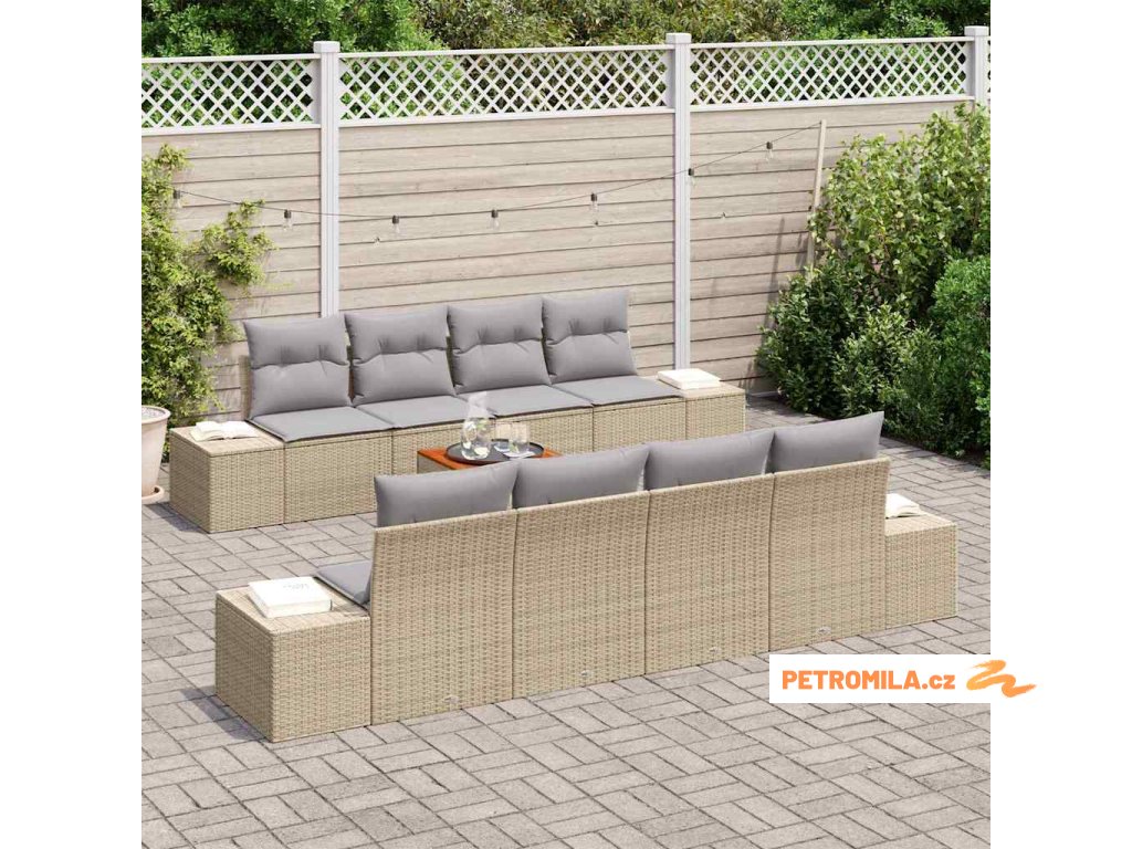 Sada zahradních pohovek s polštářem 9 pcs Béžová polyratan