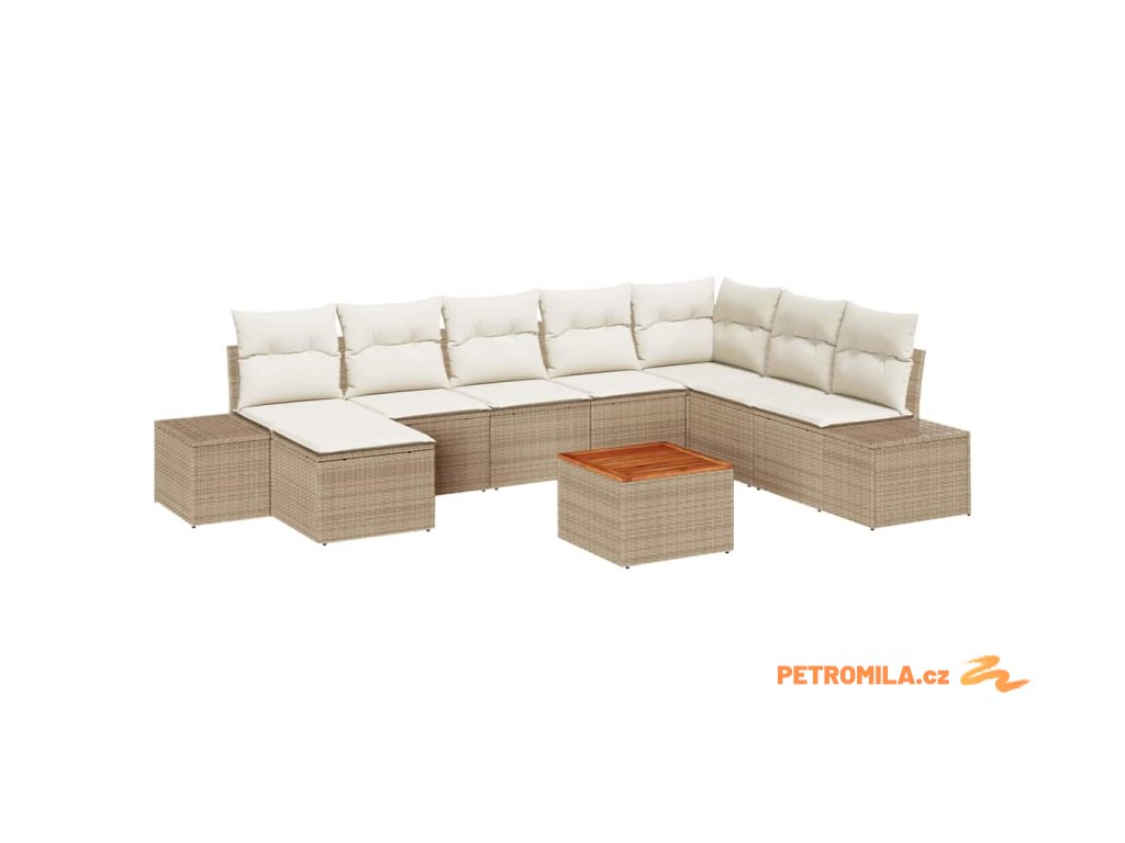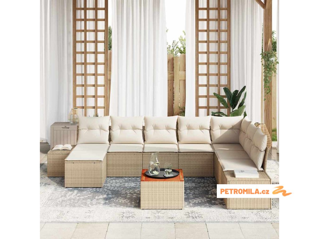 Sada zahradních pohovek s polštářem 9 pcs Béžová polyratan