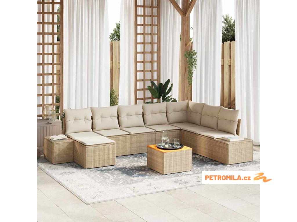 10dílná zahradní sedací souprava s poduškami béžová polyratan