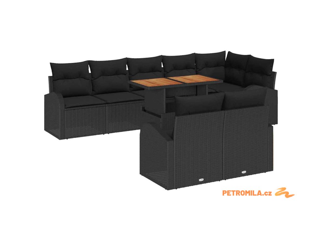 Sada zahradních pohovek s polštářem 9 pcs Černá