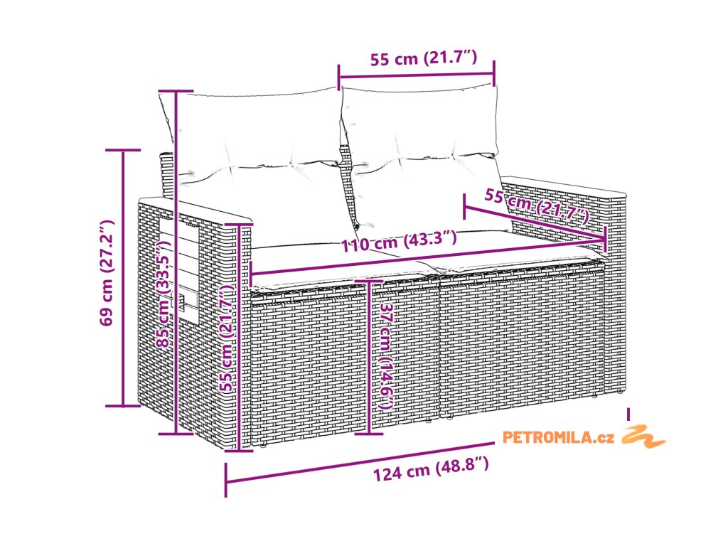 - Součásti: Sada obsahuje čtyři pohovky a dvě středové sedadla, která mají úložný prostor pro uschování věcí. Dva čtvercové stolky a stůl pak vytváří kompletní sestavu pro pohodlné sezení.