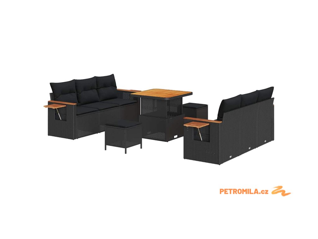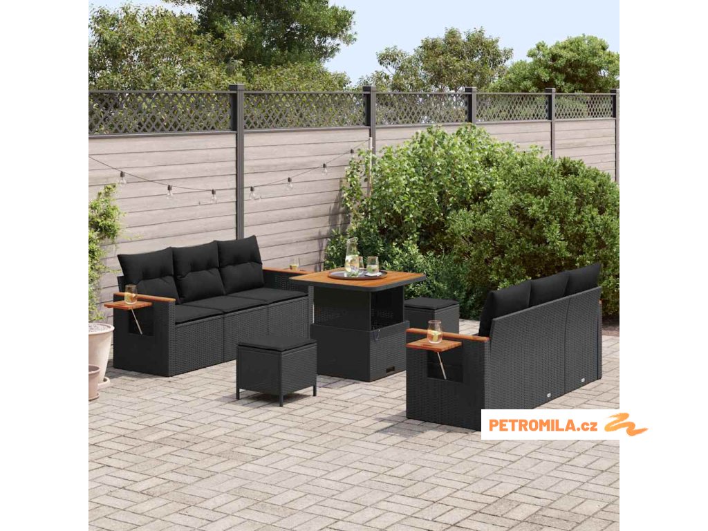 Sada zahradních pohovek s polštářem 9 pcs Černá