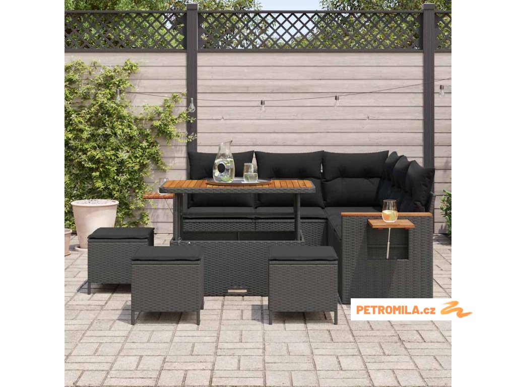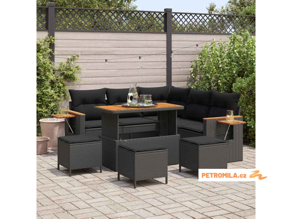 Sada zahradních pohovek s polštářem 9 pcs Černá