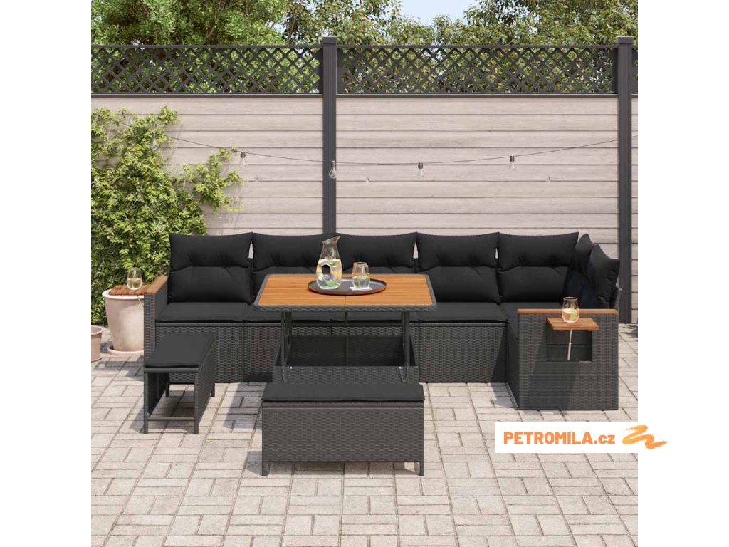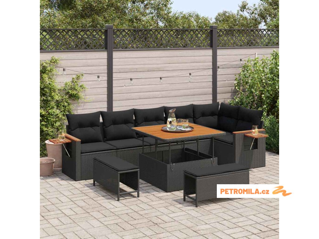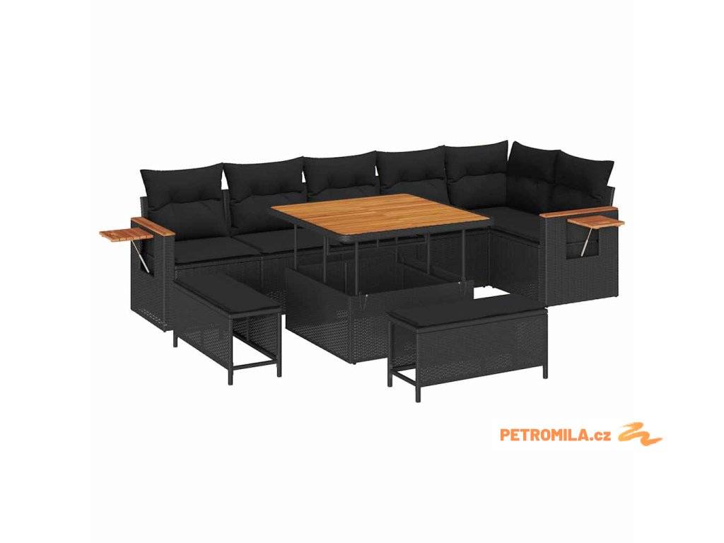 Sada zahradních pohovek s polštářem 9 pcs Černá