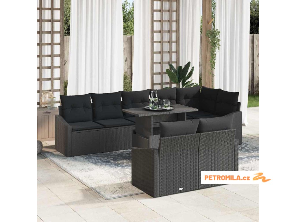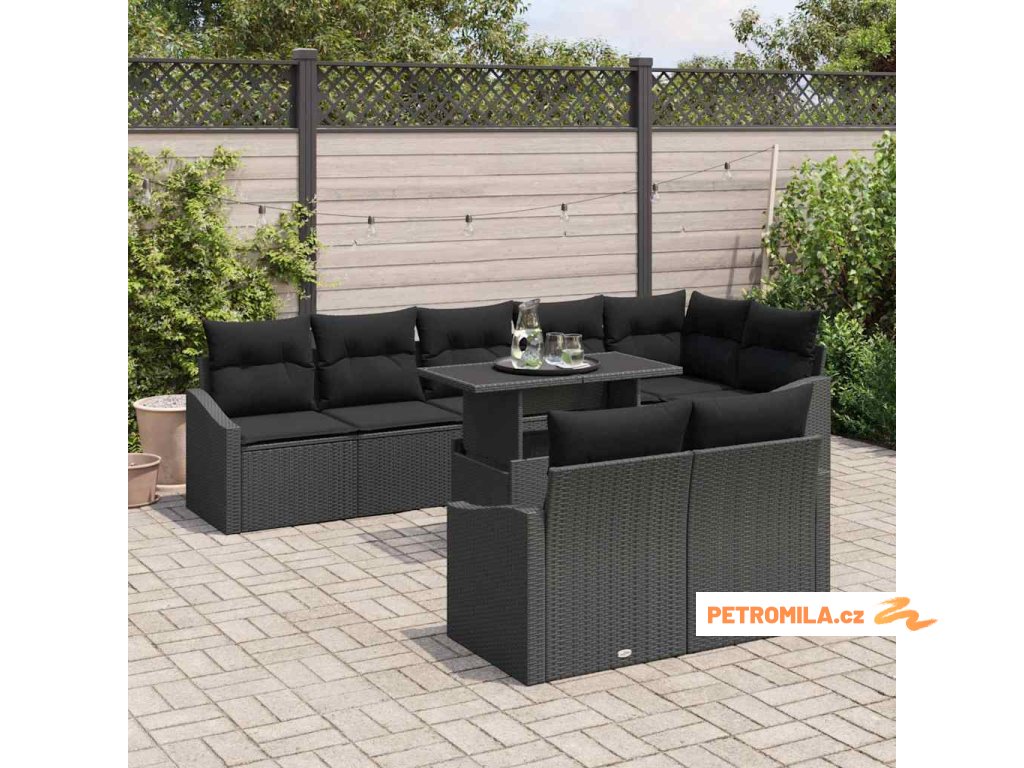 Sada zahradních pohovek s polštářem 9 pcs Černá