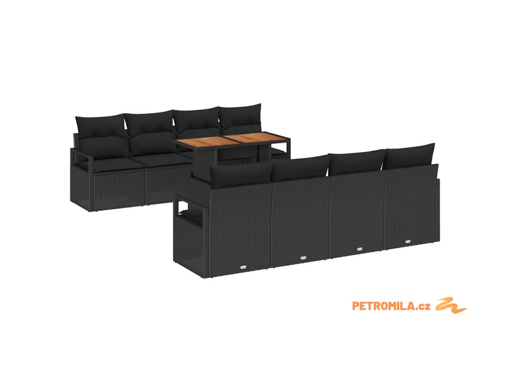 Sada zahradních pohovek s polštářem 9 pcs Černá a hnědá