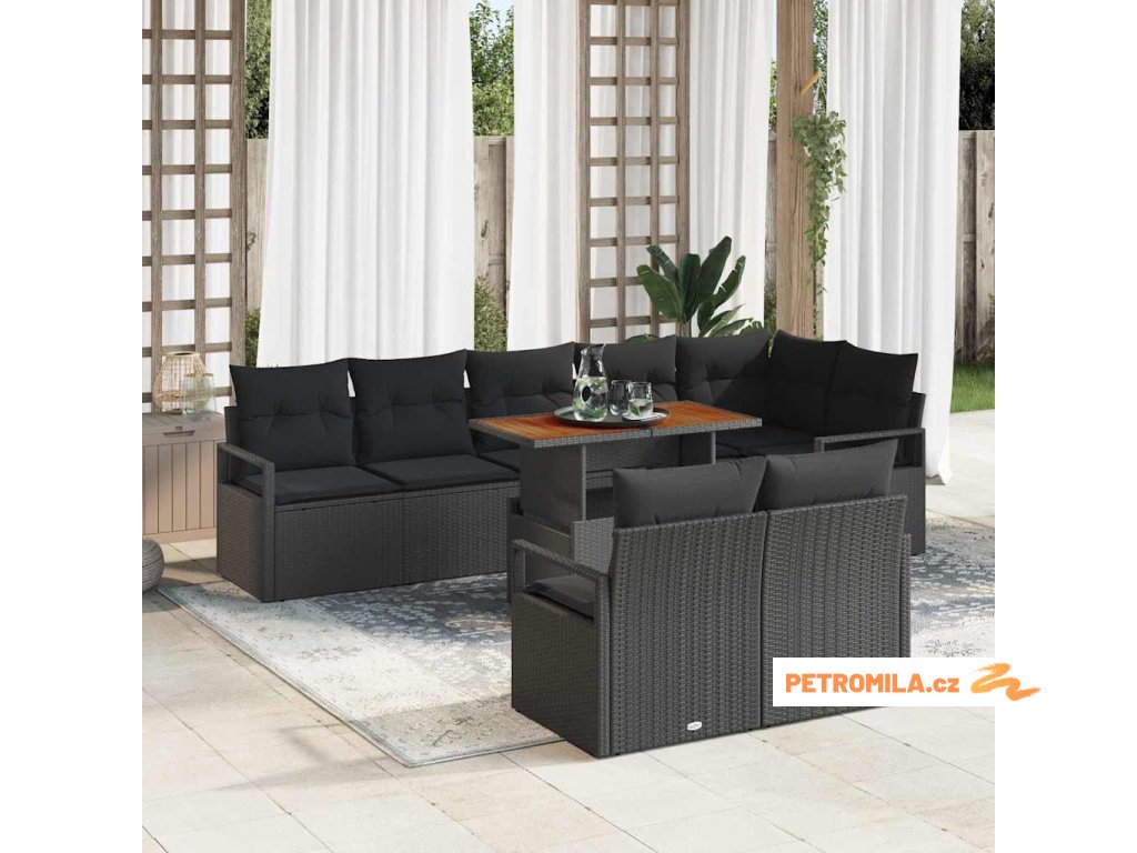 Sada zahradních pohovek s polštářem 9 pcs Černá a hnědá
