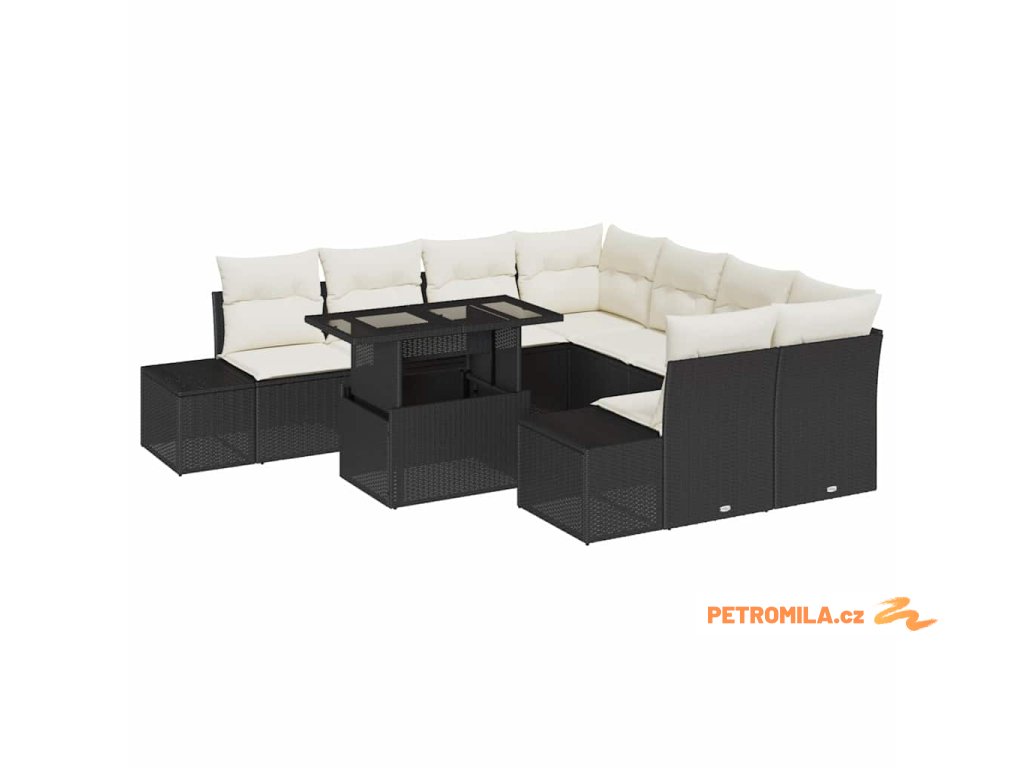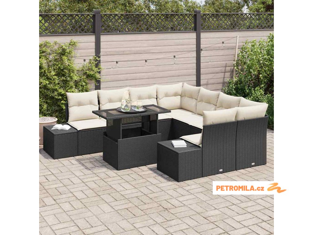 Sada zahradních pohovek s polštářem 9 pcs Černá a krémová