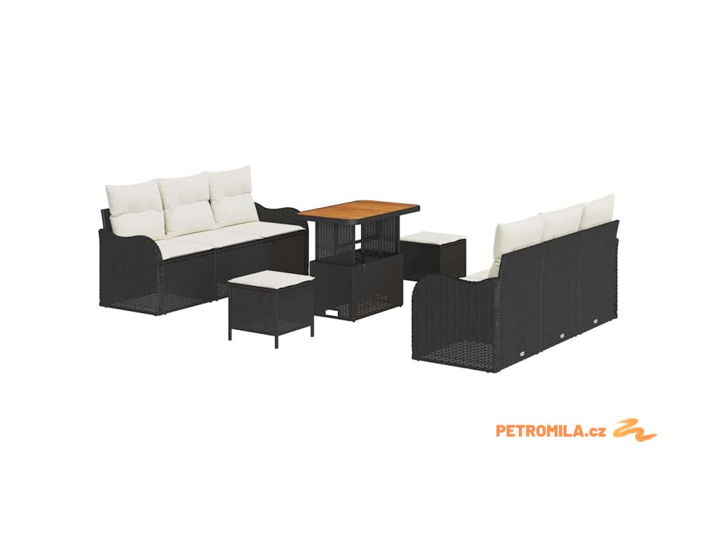 Sada zahradních pohovek s polštářem 9 pcs Černá a krémová