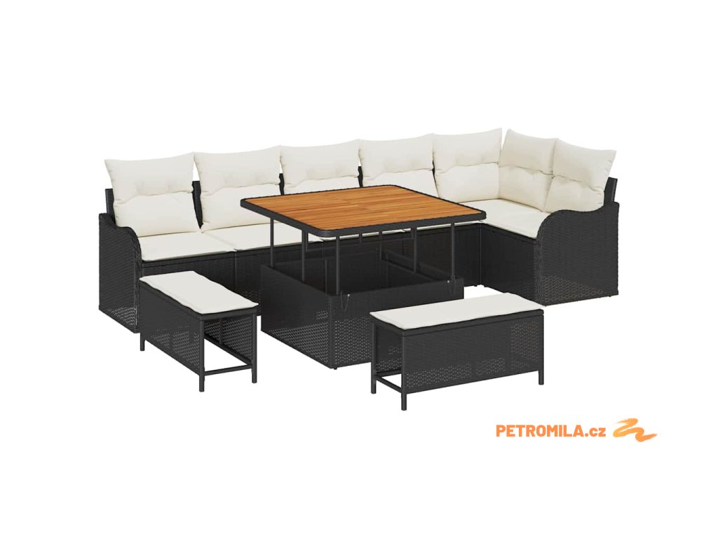 Sada zahradních pohovek s polštářem 9 pcs Černá a krémová