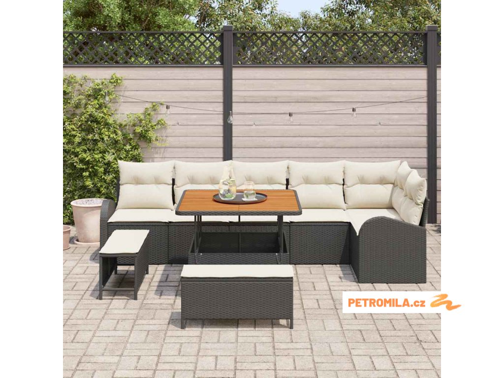 Sada zahradních pohovek s polštářem 9 pcs Černá a krémová