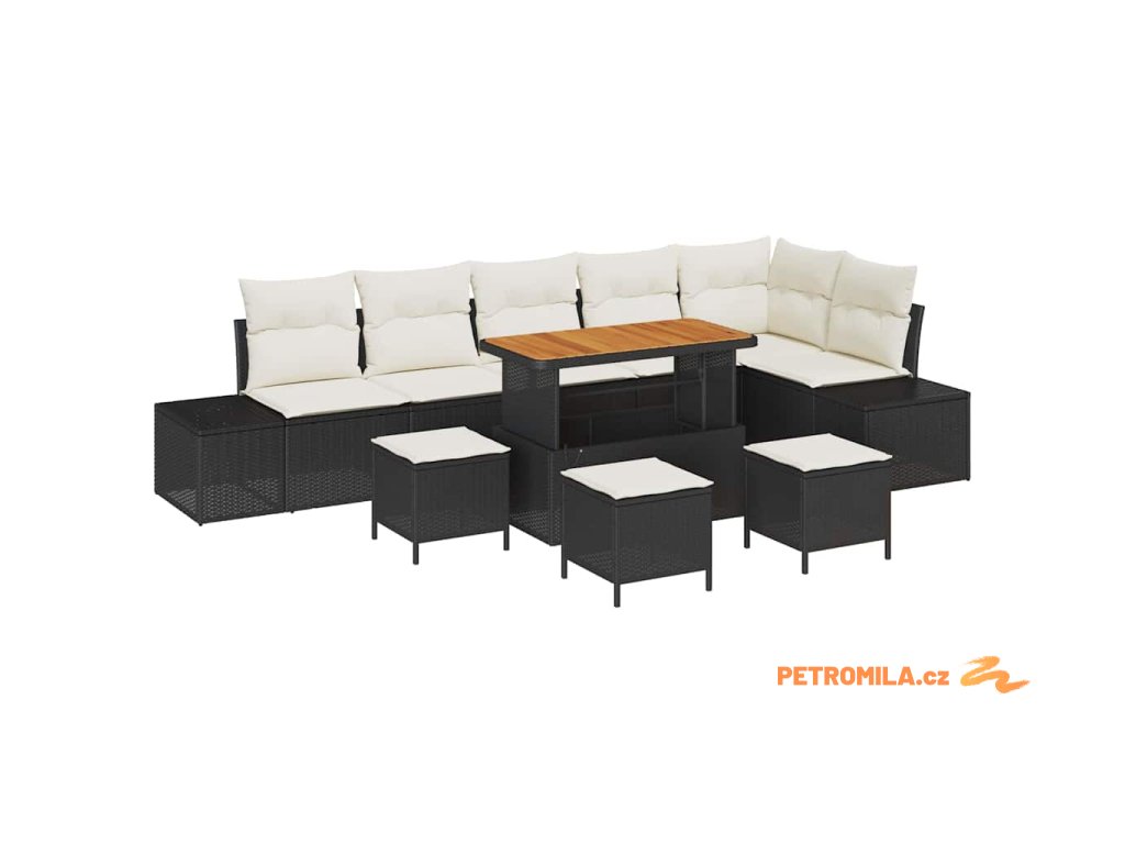 Sada zahradních pohovek s polštářem 9 pcs Černá a krémová