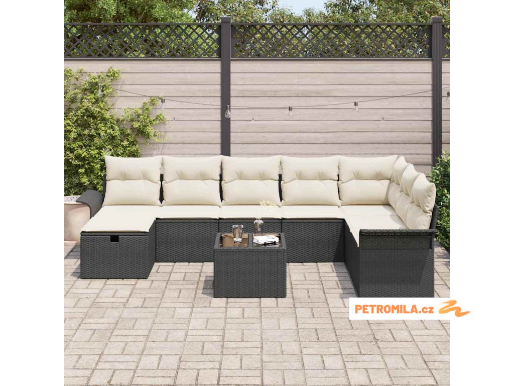 Sada zahradních pohovek s polštářem 9 pcs Černá a krémová