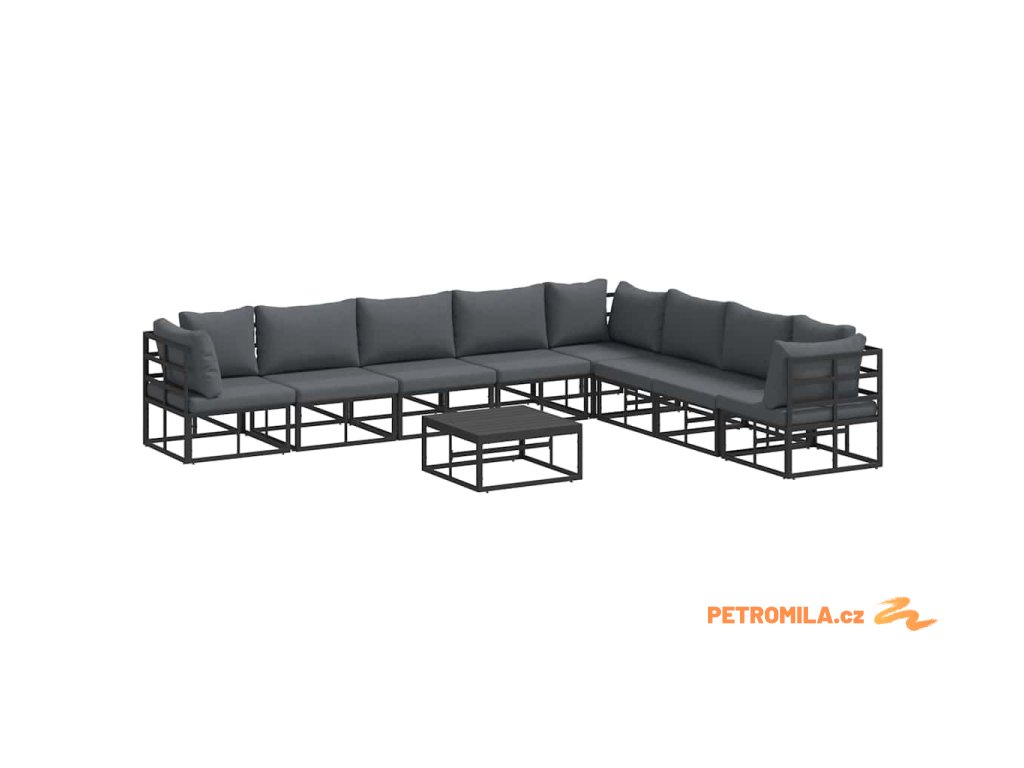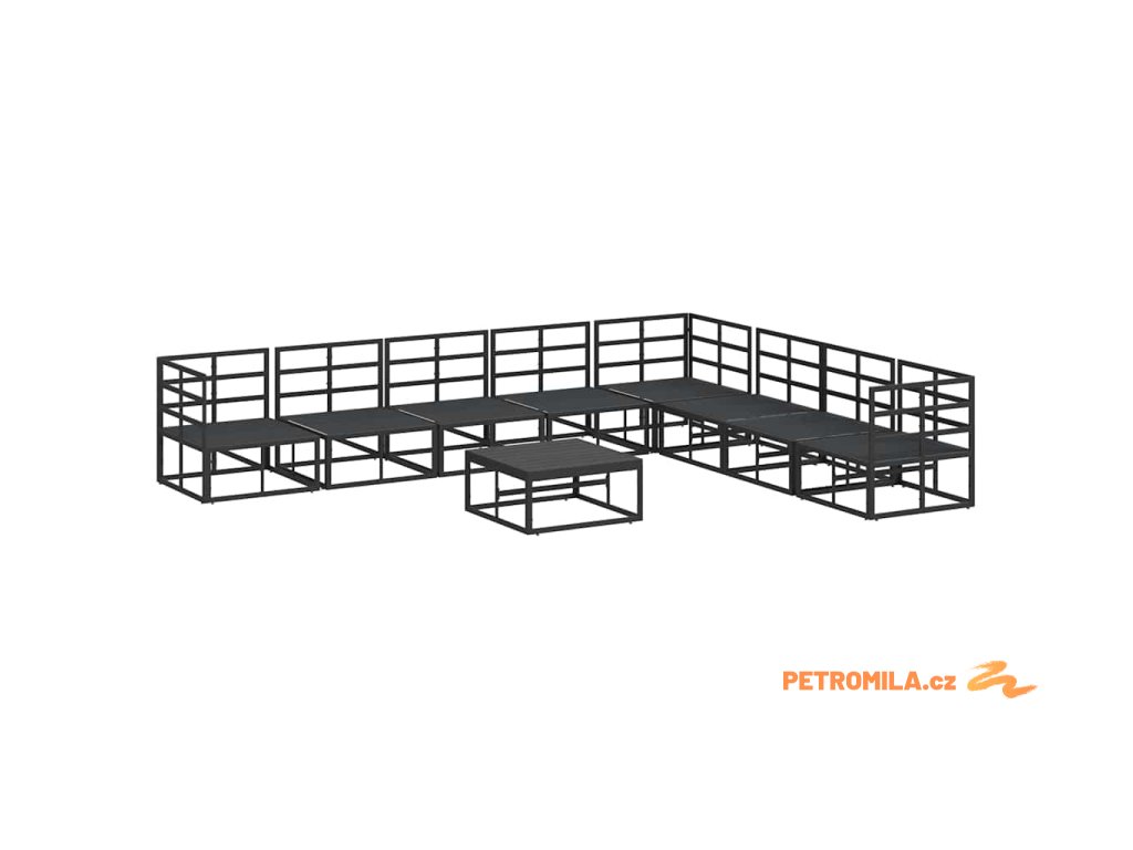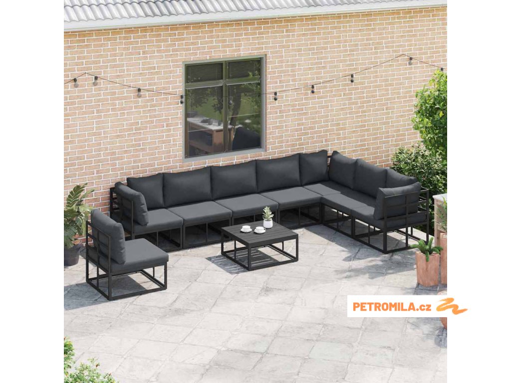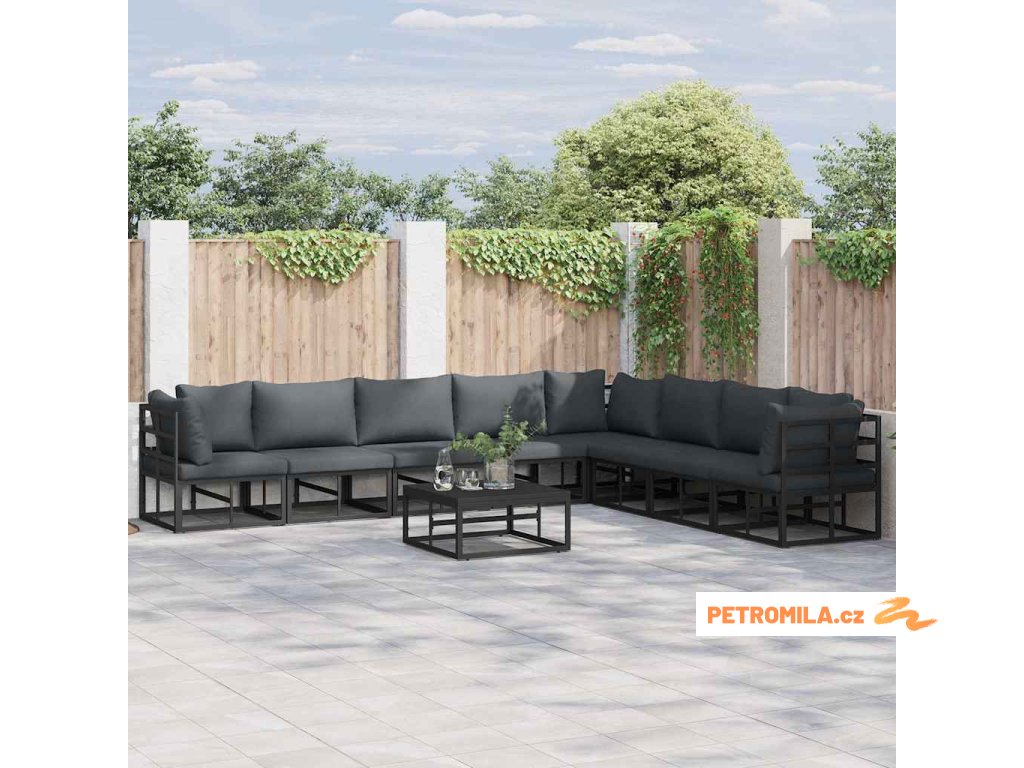 Sada zahradních pohovek s polštářem 9 pcs Černá Hliník