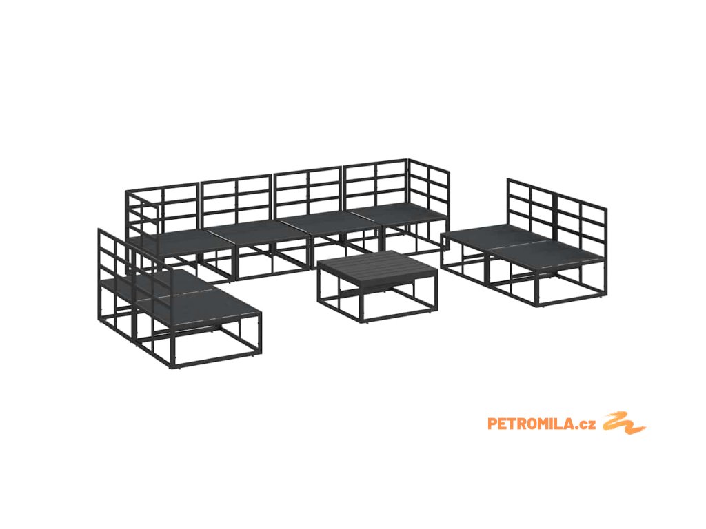 Sada zahradních pohovek s polštářem 9 pcs Černá Hliník