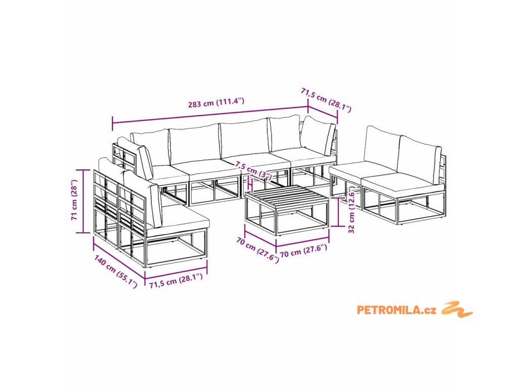 - Materiály: Robustní hliníkový rám soupravy přispívá k trvalé struktuře, která odolává povětrnostním vlivům, poskytující klid v duši. Doplňují ji elegantní polyesterové polštáře, což zajišťuje vyvážený mix trvanlivosti a měkkosti, což ji dělá praktickou a pohodlnou pro každodenní použití.