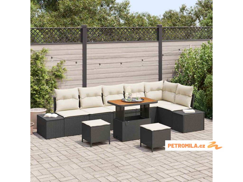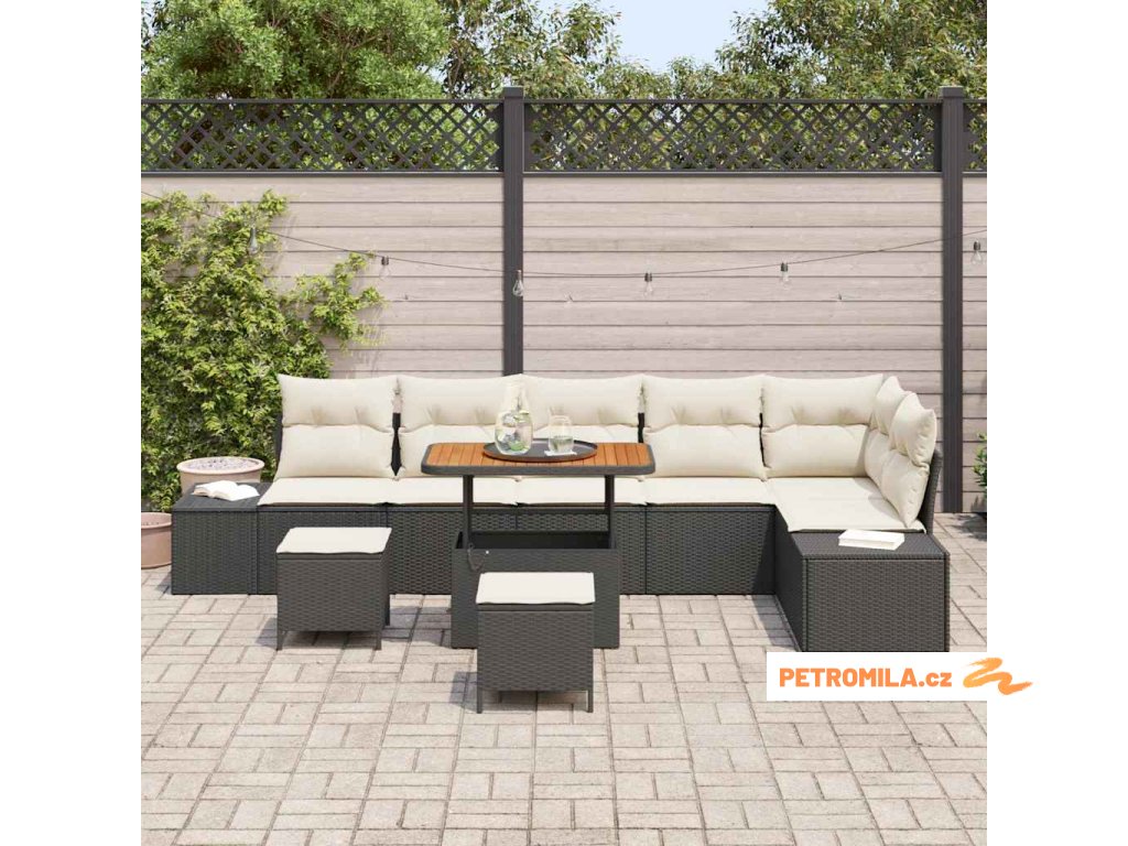 Sada zahradních pohovek s polštářem 9 pcs Černá Poly ratan