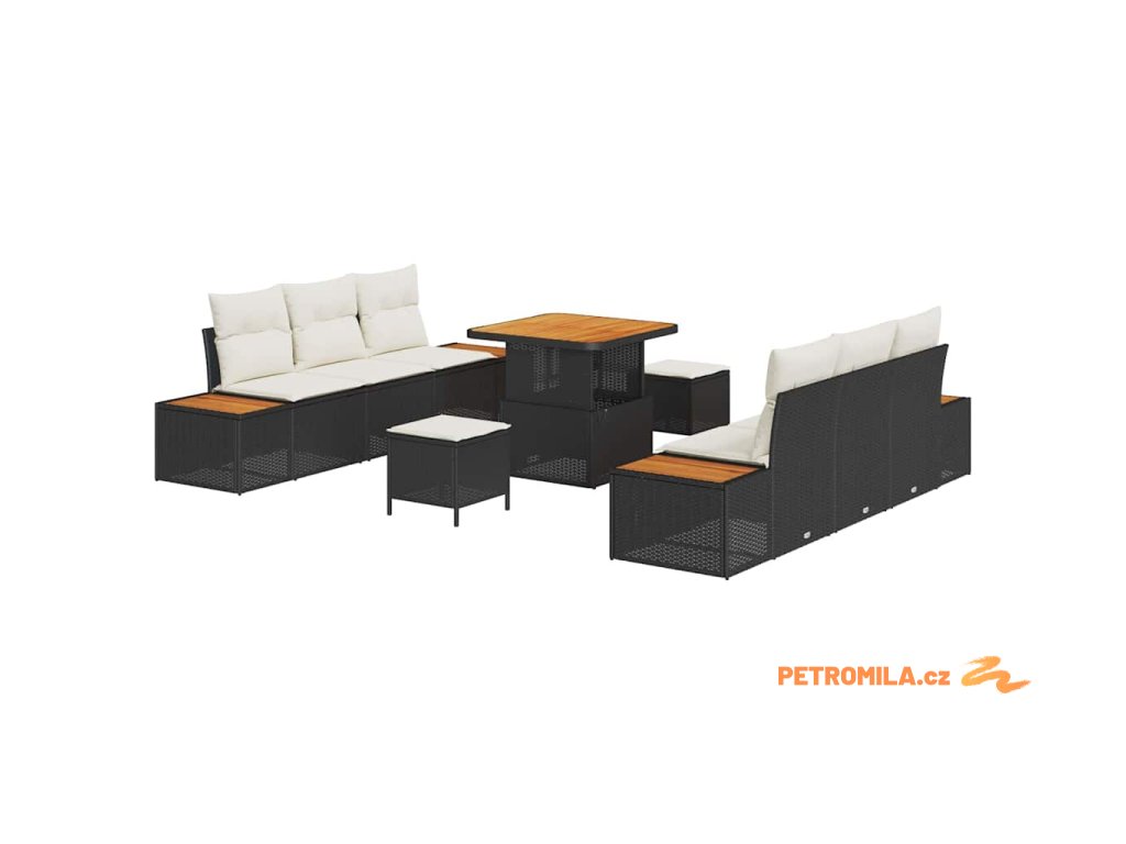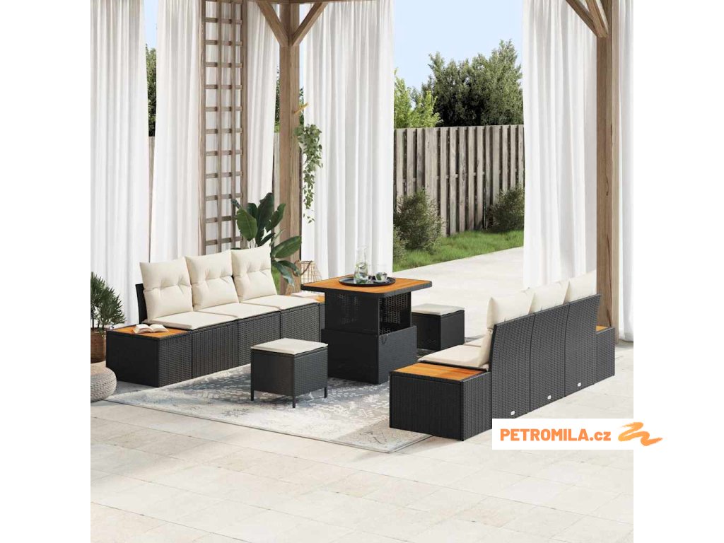 11dílná zahradní sedací souprava s poduškami černá polyratan